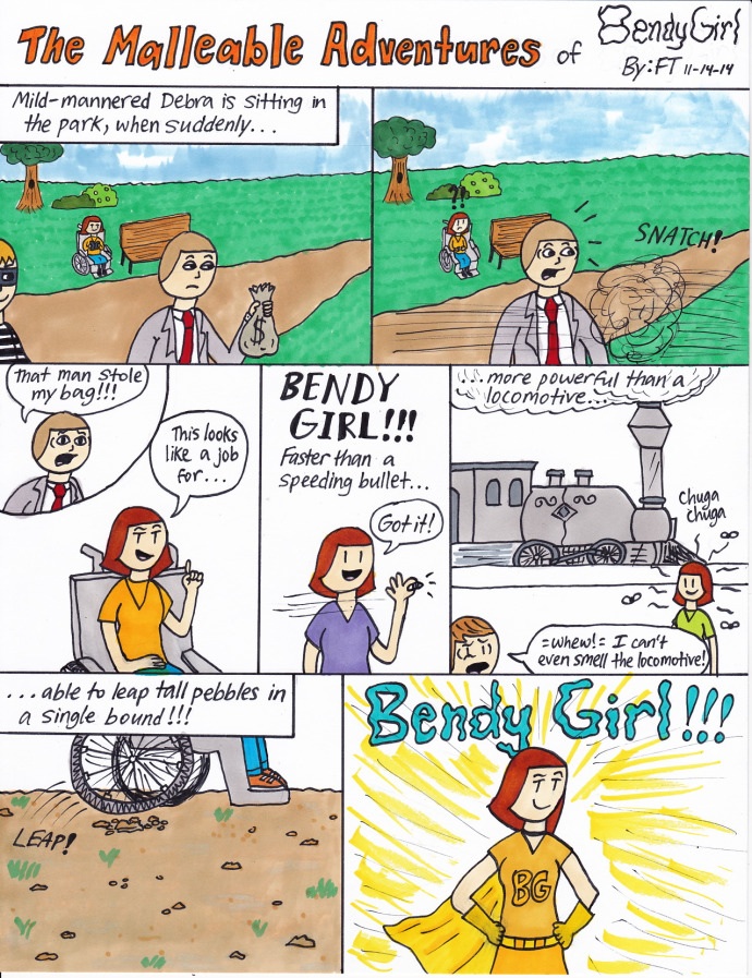 @FewArePict- the Queen of Milngavie – no idea what Debra does either but she’s represented Scotland at wheelchair rugby, loves windfarms (which is a sore point 😊) and she helped in the space of one dark weekend create the green superhero Mojito Man (although she can’t remember it happening). This resulted in FT (who we’ll mention later….😁) inventing Debra’s alterego superhero Bendy Girl, resulting in FT creating a cartoon about her…… ( a pattern is emerging 😏 )