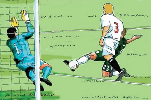 The game to and fro’d. At 2-1, I found myself in exactly the same position. Left wing, on the ball, right back to beat, space behind, an opportunity, a chance, glory ahead with every step. So…….. I did it again……yes…..I slipped the ball through his legs, two nutmegs in a row, I was GOOD! I sauntered into the penalty box, ducked left, then right and curled the ball wide of the keeper. I’d done it. Scored my first Sunday League Goal. I was GOOD π
