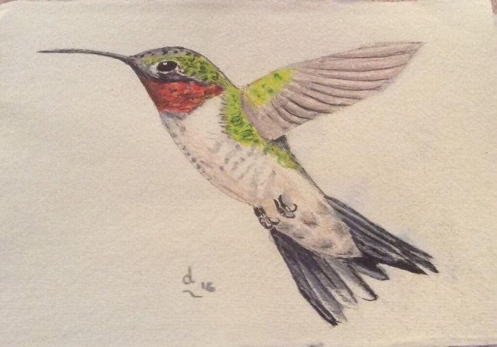 We have some great little birds in the UK. I love Robins, Pied Wagtails, Blue Tits, our Housemartins who arrive in May and depart in September. In other countries though they benefit from birds who’s colour’s are amazing. hummingbirds are one of these. Just amazing. I decided to try and draw one.