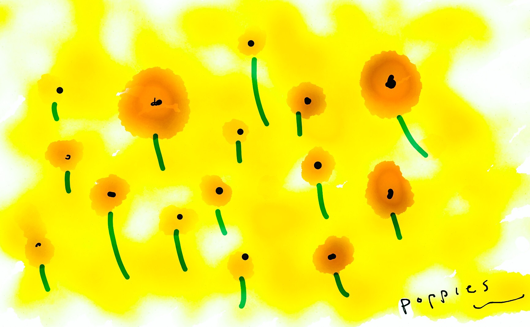 ………..ok thanks for waiting ☺️ this is an early ‘d’ actually drawn using Paper by 53, an app on the iPad. So, I didn’t even leave my seat to ‘draw’ this. You can imagine en emperors clothes type of art critic saying ‘Oh Dahling…..I like its simplicity and the colours, they just jump out at you…..’ When, actually, a 5 year old could probably have done better. ☺️