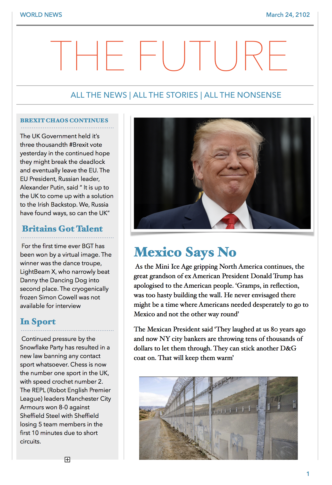 March 24, 2019 57millionthbestblogintheworld The Future Magazine ‘THE Future’ was brought to you by @qosfc1919 ©DodoProductions Share this:Tweet Click to share on Reddit (Opens in new window) Reddit Like Loading... Related