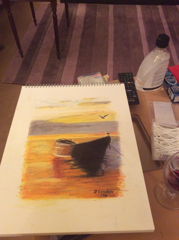 I tried a boat in coloured pencil – wasn’t too happy with this one but it was ok.