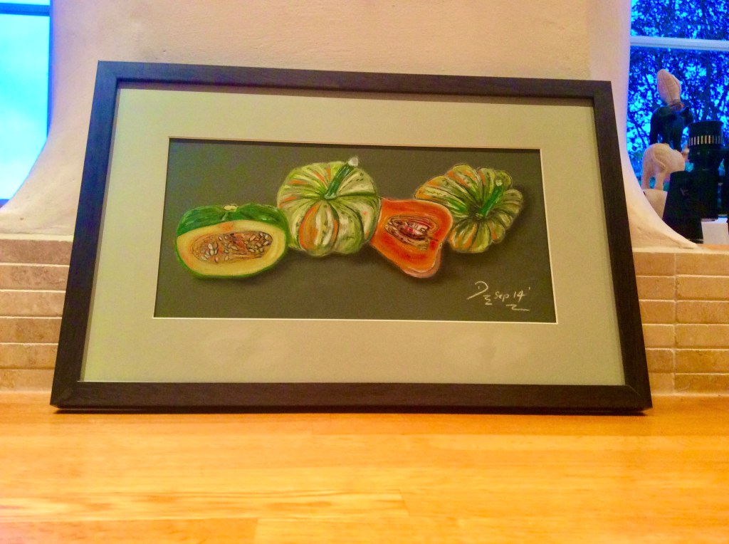 I did some squashes in pastel pencil and was so pleased I got it framed. It still sits on the dining room wall πππ