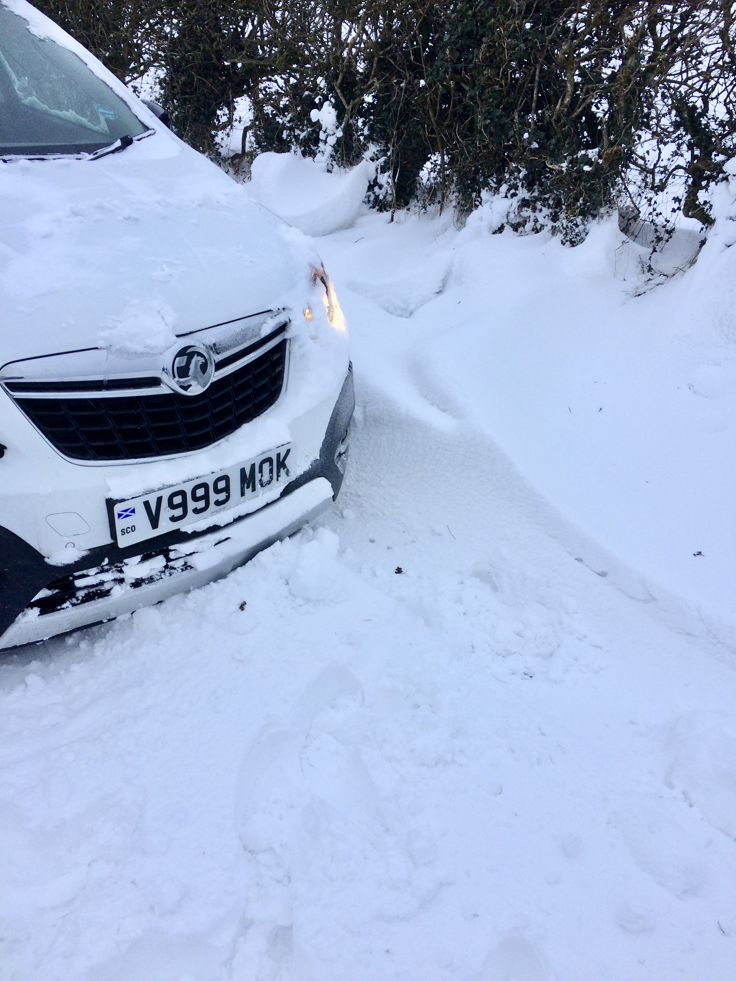 My other car and snow stories are even more boring than the one I just told you. One morning it had snowed overnight. By morning there was a little more lying snow than they’d predicted. However, I had the little 4 x 4. Everything was fine until I went to start the engine. It was dead as a dodo. Flat battery. I’d forgotten we hadn’t used to for a while, so I turned to our Vauxhall Mokka. It wasn’t a 4 x 4, but surely even it could cope with a couple of inches of snow. I set off down the hill…….