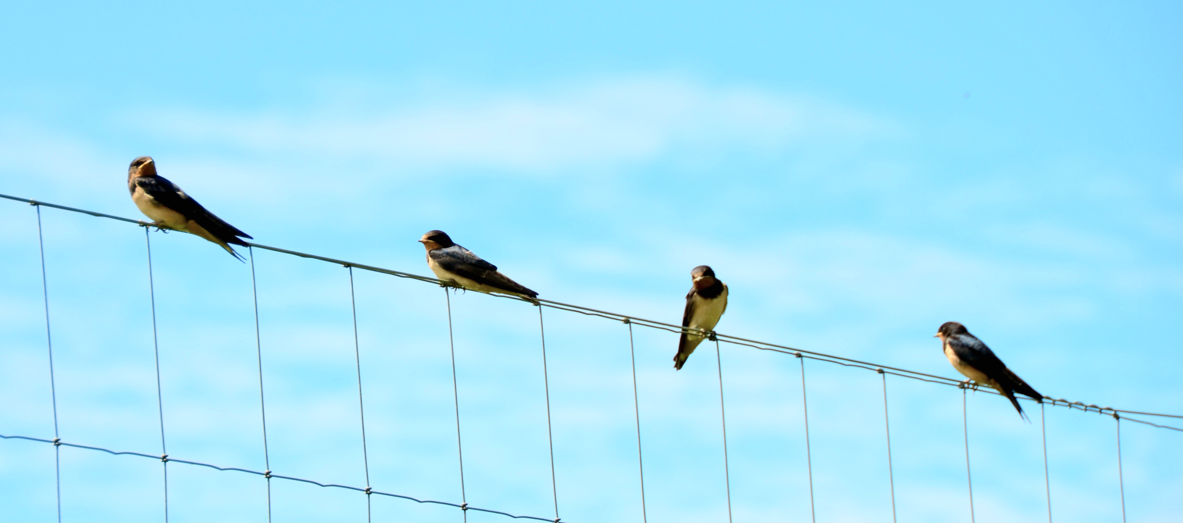 I spotted some small birds on a fence. They were too small to be spy de spy evil Ravens. They turned out to be swallows basking in the sunshine. I was quite surprised how close they let me get. I love housemartins and swallows especially the distances they travel to Africa and back to our house every year. This year, probably due to the good weather, they’d produced at least 2 if not 3 broods resulting in gatherings of over 30 birds some evenings.