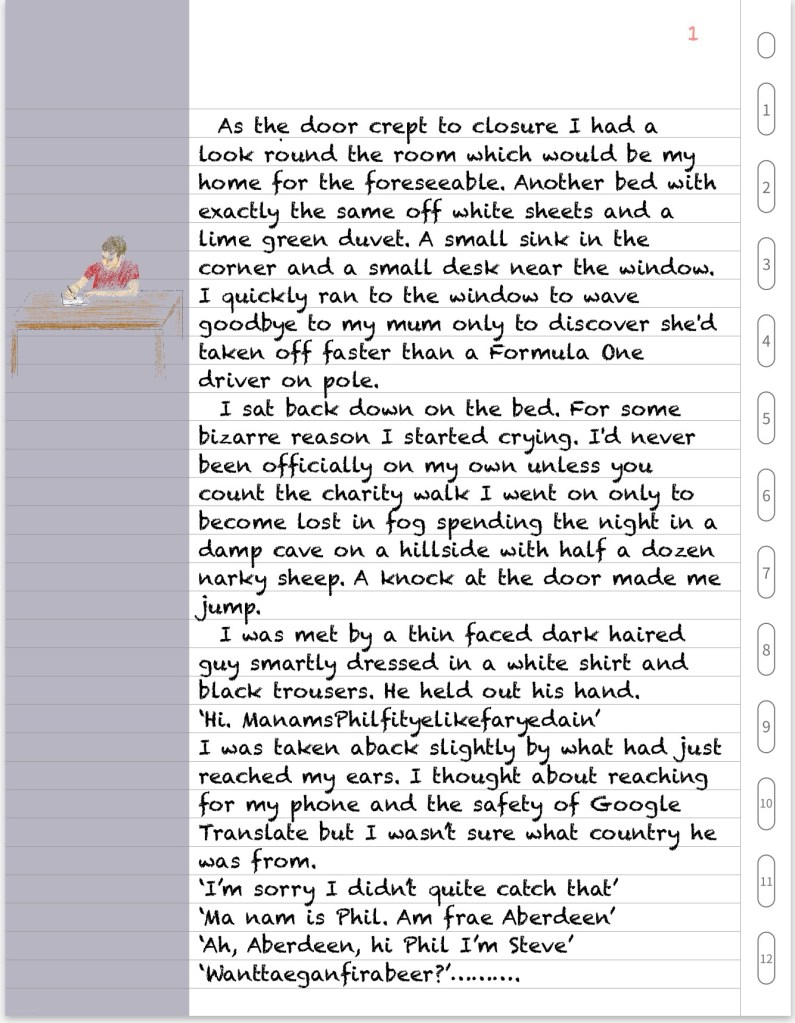 So here’s the first 7 pages of Students, a story I know not where it goeth. I’ve got a rough idea in my mind and I’m loosely using memories from when I was a student. I’m using the goodnotes 6 app on the iPad as I find it quite quirky and fun to use. You’ll see little sketches in the left border of each page. I drew these using the various tools available in goodnotes itself including the new pencil tool. I’m particularly happy with my Marcel Marceau 😁
